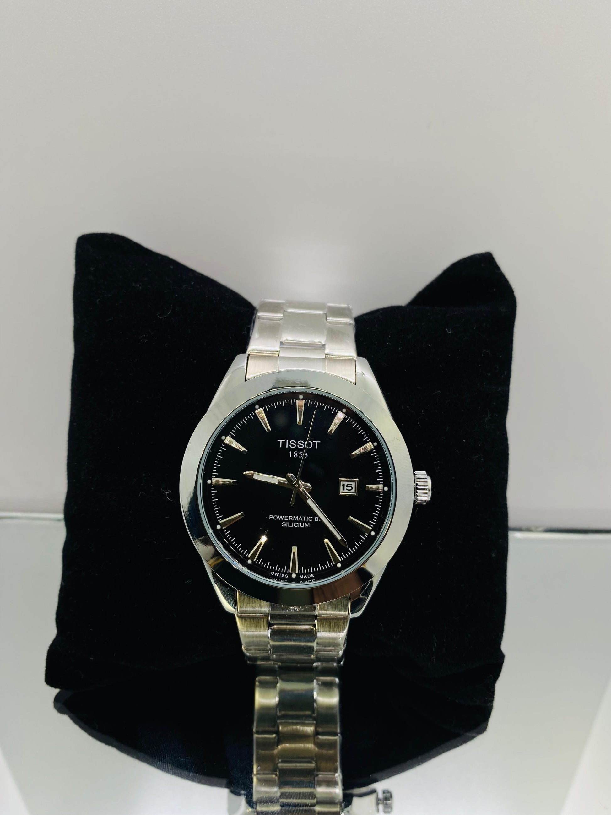 Tissot Silver with Black Dial Date & Elite Secure Crown